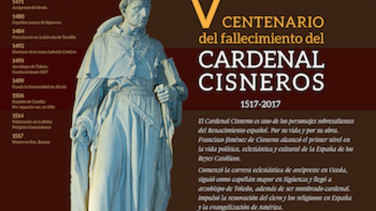 El testimonio gráfico, elaborado en celuloide, es homenaje colegial en el Año Cisneriano en curso a la histórica personalidad que le da nombre. La parte principal reproduce una efigie del insigne personaje, acompañada con sendos textos que resumen las principales fechas de su biografía y una semblanza de resume los valores de su personalidad y su obra. Y en la zona de la derecha, con foto aérea de las instalaciones colegiales, se explica la relación de nombre entre el centro escolar y el gran cardenal.