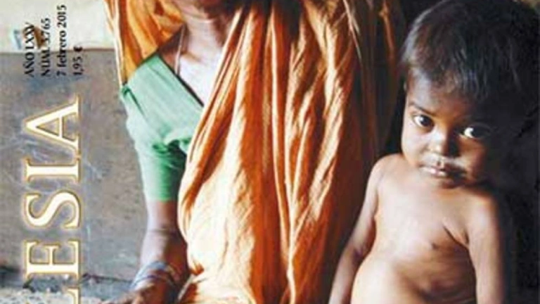Manos Unidas lleva a toda la Iglesia católica en España, un año más, en el segundo domingo de febrero, la Campaña contra el Hambre. Esta es ya la quincuagésima edición. "Luchamos contra la pobreza. ¿Te apuntas?" es su lema. En las páginas 19 y 20 a 23 de ecclesia de hoy, junto a esta portada, se presenta y desarrolla la campaña, el lema, el cartel, principales actividades, objetivos? La pobreza que afecta en el mundo, de manera cruel, a cerca de mil millones de personas, encuentra en los niños y en las mujeres sus principales víctimas. Por ello, nuestra portada de hoy muestra la imagen de un niño y de su abuela, en Bombay (India), rodeados de miseria e injusticia.