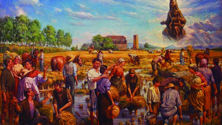 Este mes de abril de 2014 ha sido colocado el segundo mural, de las mismas dimensiones que el anterior ?siendo la mayor escena sobre esta temática en el Delta del Ebro y sobre el Delta del Ebro-, que se titula "Sega de l?arròs. Acció de gràcies a la Mare de Déu de l?Aldea". Y evoca una escena de siega de arroz en la que algunos de los 32 personajes que lo forman están mirando, rezando, indicando a la Virgen que aparece como centro de la escena aunque está en un extremo sobre la nubes. Otros están segando, o recogiendo?, en las labores típicas del campo. Mons. Enrique Benavent, obispo de Tortosa, lo bendecirá, D.m., el próximo 8 de junio, Solemnidad de Pentecostés y Fiesta de Nuestra Señora de l?Aldea.