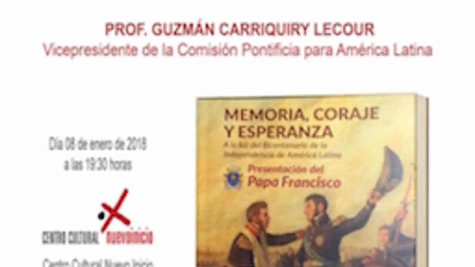 El próximo 8 de enero, el vicepresidente de la Pontificia Comisión para América Latina, el profesor Dr. Guzmán Carriquiry, presenta en la Diócesis de Granada su libro "Memoria, coraje y esperanza. A la luz del Bicentenario de la Independencia de América Latina", que en su segunda edición está publicada por la Editorial Nuevo Inicio, del Arzobispado de Granada. Le acompañará en la presentación el Arzobispo Mons. Javier Martínez.