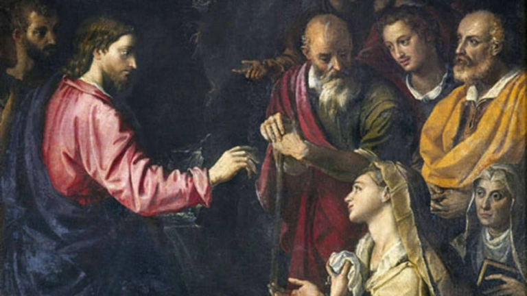 Al verla, Jesús la llamó y le dijo: «Mujer, quedas libre de tu enfermedad.»
