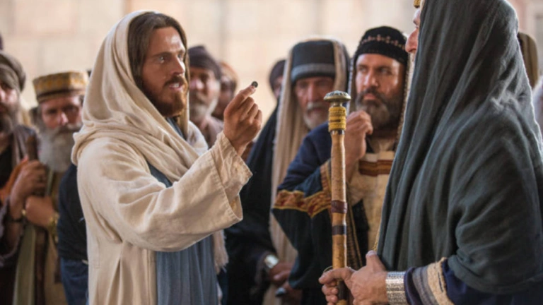 En aquel tiempo, enviaron a Jesús unos fariseos y partidarios de Herodes, para cazarlo con una pregunta. Se acercaron y le dijeron: «Maestro, sabemos que eres sincero y que no te importa de nadie; porque no te fijas en lo que la gente sea, sino que enseñas el camino de Dios sinceramente. ¿Es lícito pagar impuesto al César o no? ¿Pagamos o no pagamos?» Jesús, viendo su hipocresía, les replicó: «¿Por qué intentáis cogerme? Traedme un denario, que lo vea.» Se lo trajeron. Y él les preguntó: «¿De quién es esta cara y esta inscripción?» Le contestaron: «Del César.» Les replicó: «Lo que es del César pagádselo al César, y lo que es de Dios a Dios.» Se quedaron admirados.