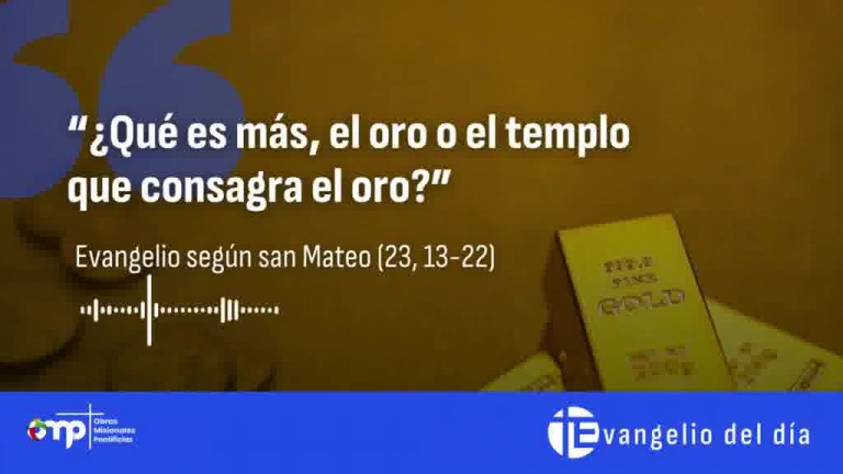 Evangelio "¿Qué es más, el oro o el templo que consagra el oro?"00:00 Volumen CerrarRedacción digitalMadrid - Publicado el 24 ago 2024, 00:331 min lecturaFacebookTwitterWhatsappTelegramEnviar por emailCopiar enlacenuestros programasLa Linterna de la IglesiaCon Irene PozoViernes de 22:30h a 23:30hIglesia NoticiaCon Faustino CatalinaDomingos de 8:30h a 9:00hSanta MisaTodos los domingosDe 9:00h a 9:45hEcclesia al díaCon Raquel CaldasLunes a viernes a las 12.05hEcclesiaCon Álvaro SáezDomingos a las 13:00hMisioneros por el mundoCon Asell Sánchez-VicenteViernes a las 21:30h Lo último Separación de bienes o gananciales: La respuesta definitiva de María Álvarez de las Asturias y Mercedes Honrubia tras 25 años asesorando matrimonios 18 ene 2026, 16:00 5 min Mario León, misionero español en el Sahara que gestiona un centro de niños con discapacidad: "Son rechazados socialmente o considerados una carga" 18 ene 2026, 16:00 8:07 min El Vaticano medió para que Maduro se exiliase a Rusia antes de que Estados Unidos le detuviera en el ataque a Caracas del 3 de enero 18 ene 2026, 15:14 3 min El Papa en el Ángelus: "Huir de un estilo de vida superficial" 18 ene 2026, 12:47 2 min El Secretario de Estado de la Santa Sede, Parolin alerta sobre el nuevo orden mundial: "se está extendiendo un desprecio por la paz y la justicia" 18 ene 2026, 11:28 4 min “Tras de mí viene uno que está por delante de mí” 18 ene 2026, 00:35 2:31 min Visto en ABC Senegal se enfrenta a Marruecos en la final de la Copa África: horario y dónde ver