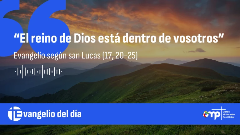 En aquel tiempo, a unos fariseos que le preguntaban cuándo iba a llegar el reino de Dios Jesús les contestó: «El reino de Dios no vendrá espectacularmente, ni anunciarán que está aquí o está allí; porque mirad, el reino de Dios está dentro de vosotros.»