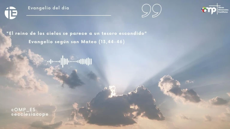 Evangelio "El reino de los cielos se parece a un tesoro escondido"Evangelio según san Mateo (13,44-46) y comentario de José María Calderón, director nacional de OMP00:00 Volumen CerrarRedacción digitalMadrid - Publicado el 30 jul 2024, 14:461 min lecturaFacebookTwitterWhatsappTelegramEnviar por emailCopiar enlacenuestros programasLa Linterna de la IglesiaCon Irene PozoViernes de 22:30h a 23:30hIglesia NoticiaCon Faustino CatalinaDomingos de 8:30h a 9:00hSanta MisaTodos los domingosDe 9:00h a 9:45hEcclesia al díaCon Raquel CaldasLunes a viernes a las 12.05hEcclesiaCon Álvaro SáezDomingos a las 13:00hMisioneros por el mundoCon Asell Sánchez-VicenteViernes a las 21:30h Lo último El Vaticano felicita a la Iglesia en España por su participación en el Jubileo de la Esperanza: El segundo país del mundo con más peregrinos 23 ene 2026, 16:39 2 min La Iglesia despide a las víctimas de Adamuz: Córdoba, Huelva, Sevilla y Madrid celebran funerales para rezar por los fallecidos 23 ene 2026, 15:16 2 min La defensa de los valores católicos europeos del Papa ante la Conferencia Europea: "Urgente necesidad de recuperar la Verdad" 23 ene 2026, 14:51 2 min El director de Proyecto Hombre tras su encuentro con el Papa: "La persona que ha caído y se ha levantado es más fuerte" 23 ene 2026, 13:11 8:26 min La Champions de los campanarios se juega en Toledo: 17 templos harán sonar sus campanas durante 40 minutos en un Torneo histórico 23 ene 2026, 12:34 2 min "La fe no ahorra el sufrimiento, pero sí le da sentido": la labor espiritual de la Iglesia de Córdoba tras el accidente de Adamuz 23 ene 2026, 11:15 7:50 min Visto en ABC Jorge Rey pone en alerta a España por la borrasca Ingrid y avisa de lo que llega de manera inminente