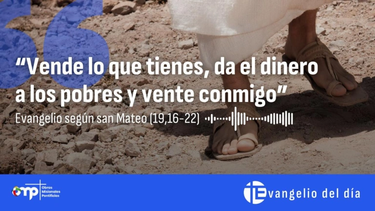 Evangelio “Vende lo que tienes, da el dinero a los pobres y vente conmigo”00:00 Volumen CerrarRedacción digitalMadrid - Publicado el 14 ago 2024, 16:431 min lecturaFacebookTwitterWhatsappTelegramEnviar por emailCopiar enlacenuestros programasLa Linterna de la IglesiaCon Irene PozoViernes de 22:30h a 23:30hIglesia NoticiaCon Faustino CatalinaDomingos de 8:30h a 9:00hSanta MisaTodos los domingosDe 9:00h a 9:45hEcclesia al díaCon Raquel CaldasLunes a viernes a las 12.05hEcclesiaCon Álvaro SáezDomingos a las 13:00hMisioneros por el mundoCon Asell Sánchez-VicenteViernes a las 21:30h Lo último “La salvación llega” 24 ene 2026, 00:10 2:21 min San Francisco de Sales 24 ene 2026, 00:00 0:53 min El Vaticano felicita a la Iglesia en España por su participación en el Jubileo de la Esperanza: El segundo país del mundo con más peregrinos 23 ene 2026, 16:39 2 min La Iglesia despide a las víctimas de Adamuz: Córdoba, Huelva, Sevilla y Madrid celebran funerales para rezar por los fallecidos 23 ene 2026, 15:16 2 min La defensa de los valores católicos europeos del Papa ante la Conferencia Europea: "Urgente necesidad de recuperar la Verdad" 23 ene 2026, 14:51 2 min El director de Proyecto Hombre tras su encuentro con el Papa: "La persona que ha caído y se ha levantado es más fuerte" 23 ene 2026, 13:11 8:26 min Visto en ABC Jorge Rey pone en alerta a España por la borrasca Ingrid y avisa de lo que llega de manera inminente