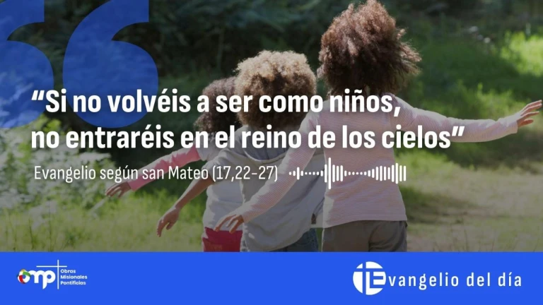 Evangelio “Si no volvéis a ser como niños, no entraréis en el reino de los cielos”00:00 Volumen CerrarRedacción digitalMadrid - Publicado el 12 ago 2024, 14:101 min lecturaFacebookTwitterWhatsappTelegramEnviar por emailCopiar enlacenuestros programasLa Linterna de la IglesiaCon Irene PozoViernes de 22:30h a 23:30hIglesia NoticiaCon Faustino CatalinaDomingos de 8:30h a 9:00hSanta MisaTodos los domingosDe 9:00h a 9:45hEcclesia al díaCon Raquel CaldasLunes a viernes a las 12.05hEcclesiaCon Álvaro SáezDomingos a las 13:00hMisioneros por el mundoCon Asell Sánchez-VicenteViernes a las 21:30h Lo último "Designo a doce para que estuvieran con Él" 23 ene 2026, 00:14 2:20 min San Ildefonso 23 ene 2026, 00:00 0:51 min "Tener presencia regular en Tierra Santa": los obispos del mundo se reúnen en Israel y Palestina para asegurar la presencia del cristianismo en la región 22 ene 2026, 15:12 3 min León XIV da luz verde a la beatificación de Augusto Ramírez, fraile ligado a Teruel que fue asesinado durante la guerra civil de Guatemala 22 ene 2026, 14:24 3 min El motivo por el que muchos coches llevan la bandera de España en el retrovisor 22 ene 2026, 14:22 3 min Rafael Godoy, párroco de Adamuz, desmiente el bulo sobre la menor de 6 años que perdió a su familia en los trenes: "Una policía la sacó del tren” 22 ene 2026, 14:20 1:37 min Visto en ABC Aviso de la Aemet por nieve en Madrid en las próximas horas: la cota puede descender hasta los 400 metros