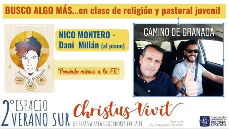 -16:30 / 19:30: “Busco algo más” ...en clase de religión y pastoral juvenil. Nico Montero, acompañado de su pianista Dani Millán.