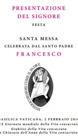 Librito de la celebración de la misa en la XX Jornada Mundial de la Vida Consagrada, Jubileo y Clausura del Año de la vida Consagrada (2-2-2016) Redacción Digital