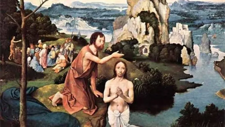 Al salir de las aguas, Jesús ve rasgarse el cielo y al Espíritu Santo bajar hacia él "como una paloma". La paloma que baja sobre él recuerda la otra paloma que indicó a Noé el fin del diluvio. Jesús es la tierra firme de la nueva humanidad. La tierra de la esperanza y de la vida.