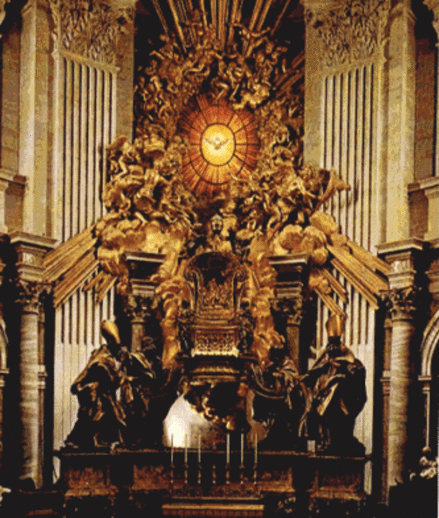Queridos hermanos y hermanas, en el ábside de la basílica de San Pedro, como sabéis, se encuentra el monumento a la Cátedra del Apóstol, obra madura de Bernini, realizada en forma de gran trono de bronce, sostenido por las estatuas de cuatro doctores de la Iglesia, dos de Occidente, san Agustín y san Ambrosio, y dos de Oriente, san Juan Crisóstomo y san Atanasio. Os invito a deteneros ante esta obra tan sugestiva, que hoy se puede admirar decorada con muchas velas, para orar en particular por el ministerio que Dios me ha encomendado.