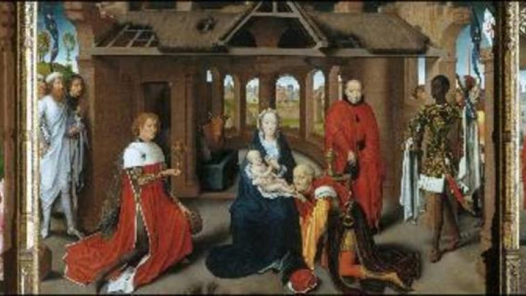 Hans Memling, en el Tríptico de la Adoración de los Reyes, que se conserva en el Museo del Prado, nos permite contemplar tres escenas de Navidad: el Nacimiento de Jesús, la Adoración de los Magos y la Presentación del Niño Jesús en el Templo al anciano Simeón.