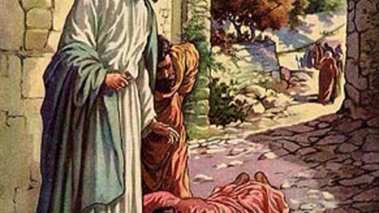En la Primera Lectura del Segundo Libro de los Reyes, nos narra la curación de lepra del magante Naamán a través de un "instrumento de Dios" como era el Profeta Eliseo. El profeta manda al magnate que se bañara siete veces en las aguas del río Jordán, y al salir, como dice la escritura "su carne quedó limpia como la de un niño". Desde ese momento Naamán empezó a reconocer a Dios y alabarlo.
