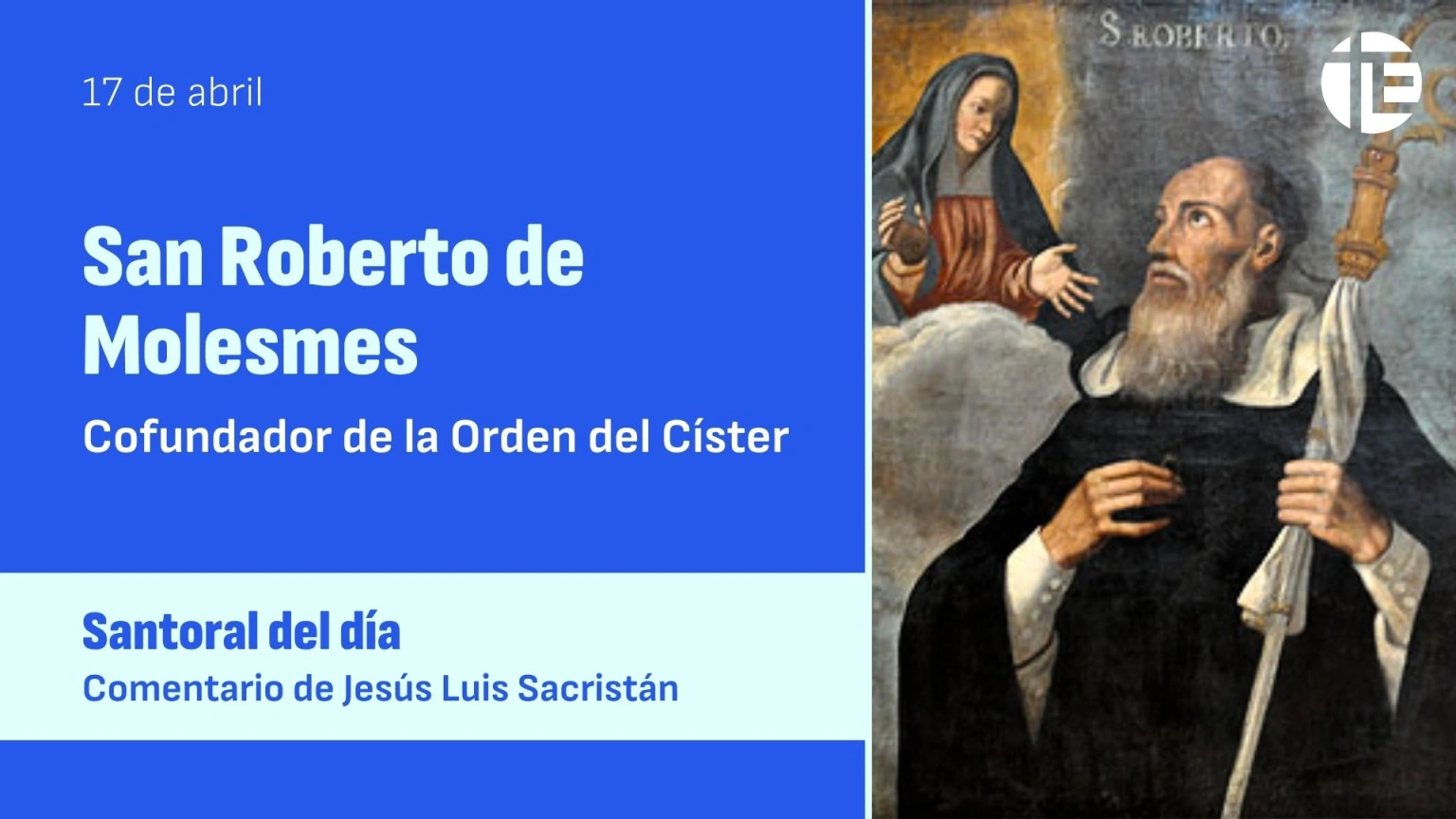 Nos acercamos hoy hasta los orígenes de la reforma en la vida monástica que genera el carisma cisterciense. Hoy celebramos a San Roberto de Molesmes baluarte de esta andadura, junto a San Bernardo de Claraval. Nace en Champagne (Francia) alrededor del año 1029.