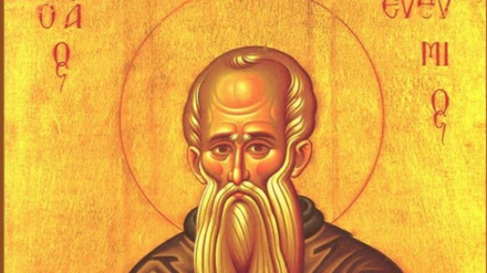 En 411, se retiró al desierto con Teoctisto, un compañero ermitaño, y vivió en una caverna en las orillas de un torrente