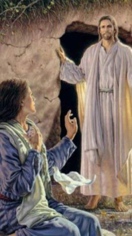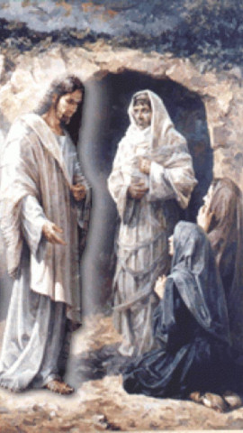 María Magdalena, María de Salomé y María la de Santiago observan cómo la piedra ha sido corrida y que el Sepulcro está vacío: "¡Ha resucitado!"