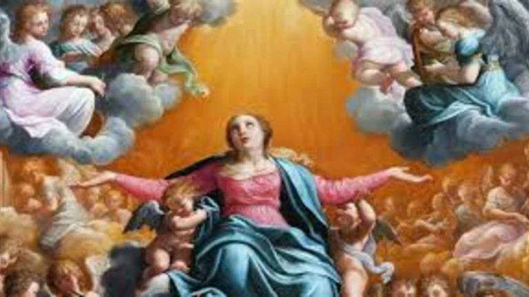 Fue el Papa Pío XII, quien, el año 1950 definió este Dogma, cuando proclamó de Fe Divina y Revelada que la Virgen María, terminado el curso de su vida terrena, fue asunta en Cuerpo y Alma a los Cielos. Una señal apareció en el Cielo: Una Mujer resplandeciente como el sol, con la luna por pedestal. Estaba a punto de dar a luz y gritaba entre los espasmo del parto. Junto a ella, apareció también otra señal. Un enorme dragón rojo con siete cabezas y diez diademas. El dragón estaba enfrente de la mujer, esperando a que diese a luz y dispuesto a tragarse al fruto de sus entrañas. Pero a Ella le fueron dadas alas y fue arrebatada de aquel lugar. Entonces el dragón humillado, se puso a hacer la guerra a los descendientes del Hijo de la Mujer. Con razón no quisiste Señor que conociese la corrupción del sepulcro la que concibió por Obra del Espíritu Santo y dio a luz a tu Hijo Unigénito. La glorificación de María es prototipo de la Gloria que un día se nos manifestará a todos puesto que nuestra Víctima Pascual ha siso inmolada. María, Hija del Padre, Madre del Hijo, Esposa del Espíritu Santo y Sagrario y Templo de la Santísima Trinidad, ha sido glorificada y ensalzada sobre todos los coros celestiales.