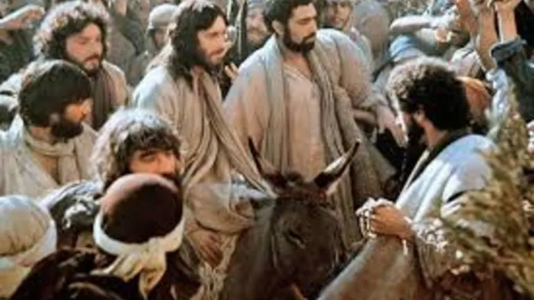 Cuando llegaon a Betfagé, cerca dle Monte d elos Olivos Jesús se detuvo con sus discípulos y mnandó dos de ellos a que le trajesen en una casa concreta un pollino atado. También les advirtió que si alguien les pedía explicaciones dijesen que era para el Señor y que lo devolvería pronto. Así sucedió todo. Entonces cuando subió montado en la borriquilla la gente y los niños salieron a su encuentro aclamándolo con ramos de olivo y gritando Bendito el que viene en el nombre del Señor. Hoy la Liturgia adopta la Iglesia Madre de de Jerusalén y la Romana. Por parte de la Iglesia de Jerusalén proclama el Evangelio de la Entrada en jerusalén correspondiente a San Marcos en el ciclo B, o San Juan. También asume desde la Liturgia Romana la Lectura de la Pasión según San Marcos.