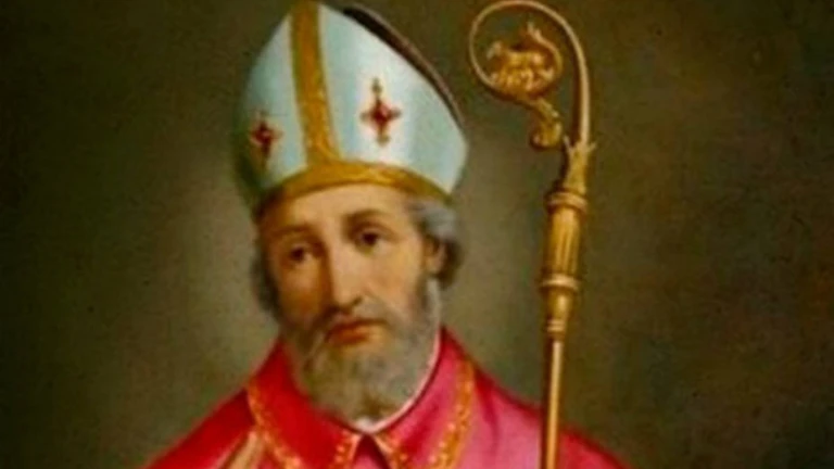 Iconografía: Se le representa con casulla roja, mitra y Báculo.