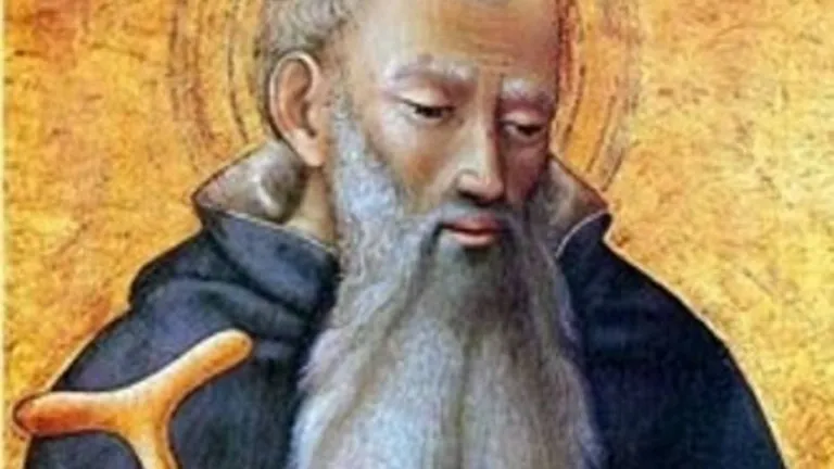Iconografía: Se le representa con una túnica sencilla de color oscuro al estilo del más puro anacoretismo y un cayado.