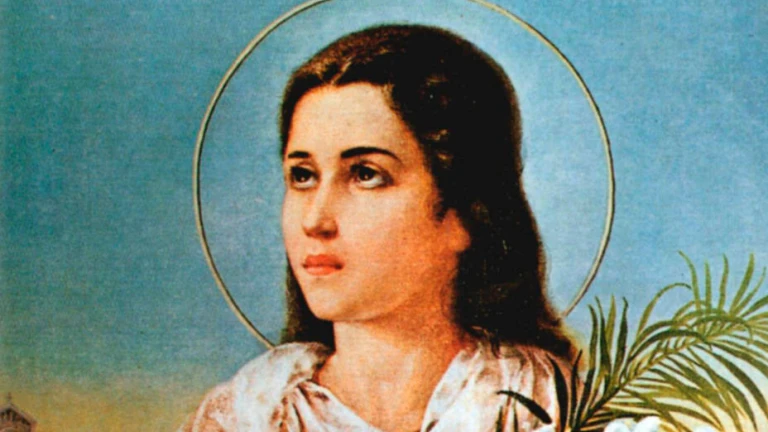 Iconografía: Se le representa como una niña con la palma de martirio.