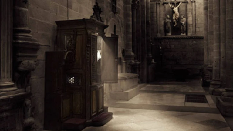 Confesionario en luz de sombra