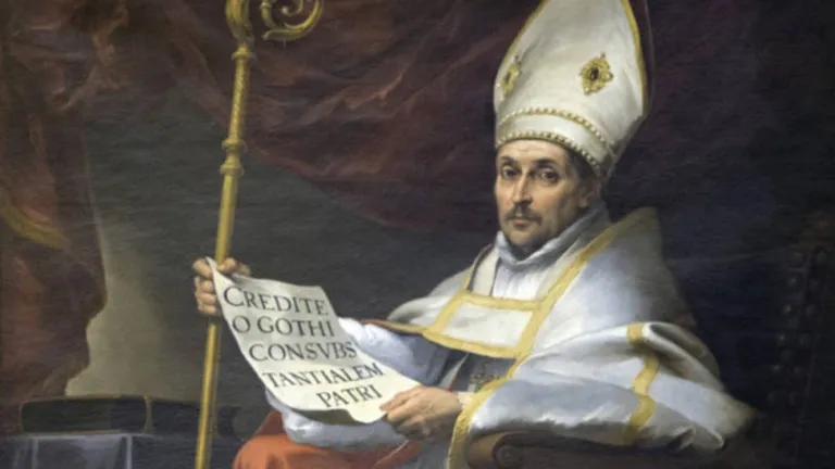 Tras reconocer su error y mandar volver a Leandro, el monarca le encarga el cuidado de su hijo Recaredo al que convertirá también al catolicismo, este Santo Obispo que presidirá el III Concilio de Toledo, donde se dan normas para fomentar la Santidad de los sacerdotes y los laicos. Muere en el 600 y sus reliquias descansan en la Catedral Hispalense.