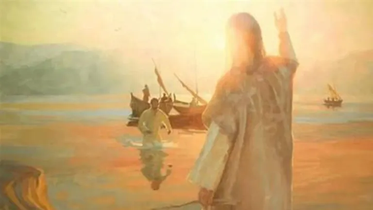 Varios del grupo se le unen en una noche donde no han pescado nada, retornando desanimados. A la orilla les espera el Maestro Resucitado al que ellos no reconocen, de momento. Cristo les pregunta si tienen pescado, a lo que le responden que “no”. El Misterioso Hombre a sus ojos les anima a echar de nuevo las redes, recolectando 153, pero la red no se rompió. Este signo hace que Juan, llamado a sí mismo discípulo amado, le reconozca y se lo diga a los compañeros que van corriendo a su encuentro.