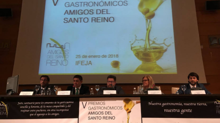 El presidente de la Diputación Provincial de Jaén, Francisco Reyes, ha participado en la entrega de los Premios Gastronómicos Amigos del Santo Reino de Jaén, unos galardones que han alcanzado su quinta edición y con los que la asociación homónima reconoce a restaurantes y cocineros jiennenses que destacan por su calidad. “Pocos eventos en la provincia han tenido en tan poco tiempo la repercusión que tienen estos premios de la Asociación Gastronómica Amigos del Santo Reino, que se han convertido en una cita fija anual en la provincia con tan solo 5 años de vida”, ha apuntado Francisco Reyes, que ha intervenido en este acto en el que también han estado presentes el consejero de Agricultura, Pesca y Desarrollo Rural de la Junta de Andalucía, Rodrigo Sánchez, la subdelegada del Gobierno en Jaén, Francisca Molina, el segundo teniente de alcalde de Jaén, Miguel Contreras, y el presidente de la Asociación Amigos del Santo Reino, Darío Díaz.