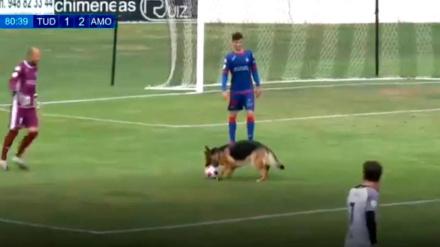 Corría el minuto 81 del partido entre el Tudelano y la SD Amorebieta cuando un perro saltó al terreno de juego y se llevó el balón.