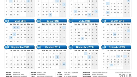 El calendario de trabajo del próximo año recoge un total de 12 días festivos