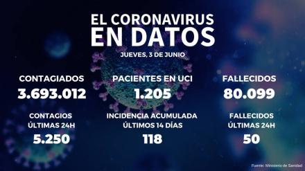 Sanidad notifica 5.250 nuevos positivos y 50 fallecidos en las últimas 24 horas