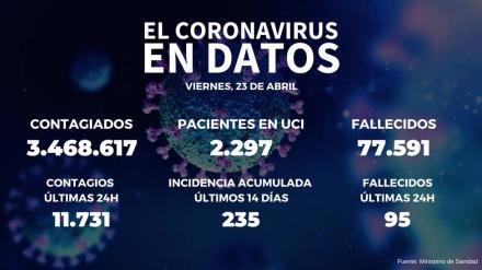 Sanidad notifica 11.731 nuevos positivos y 95 fallecidos en las últimas 24 horas