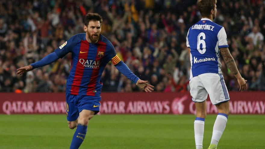 El Barcelona ganó pidiendo la hora 3-2 ante la Real Sociedad gracias a los goles de Messi (2) y Paco Alcácer. Umtiti, en propia puerta, y Xabi Prieto, marcaron para una gran Real Sociedad. Todos los goles fueron en la primera parte. Los azulgranas llegan a tres puntos del Madrid, al que se enfrenta el próximo domingo en el Santiago Bernabéu.