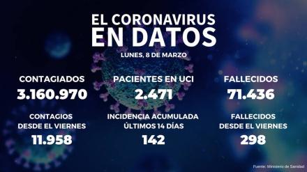 Sanidad notifica 11.958 nuevos positivos y 298 fallecidos desde el viernes
