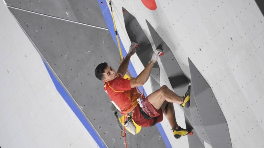 El español, campeón olímpico en Tokio 2020, ha sido tercero en la final de dificultad en el campeonato que se está celebrando en Múnich. Adam Ondra, oro; Luka Potocar, plata.