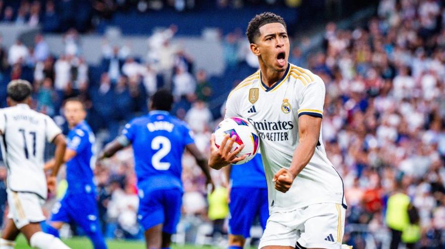 Bellingham aprovechó un mal rechace de Soria para culminar la remontada del Real Madrid que sigue líder con pleno de victorias. Mayoral adelantó al Getafe y Joselu se estrenó.
