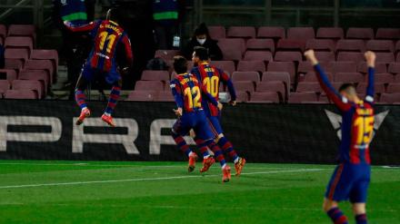 El Barça llegará al Clásico con dos puntos sobre el Real Madrid y a uno del Atlético. Óscar Plano terminó expulsado. El equipo de Koeman encadena 19 jornadas sin perder.