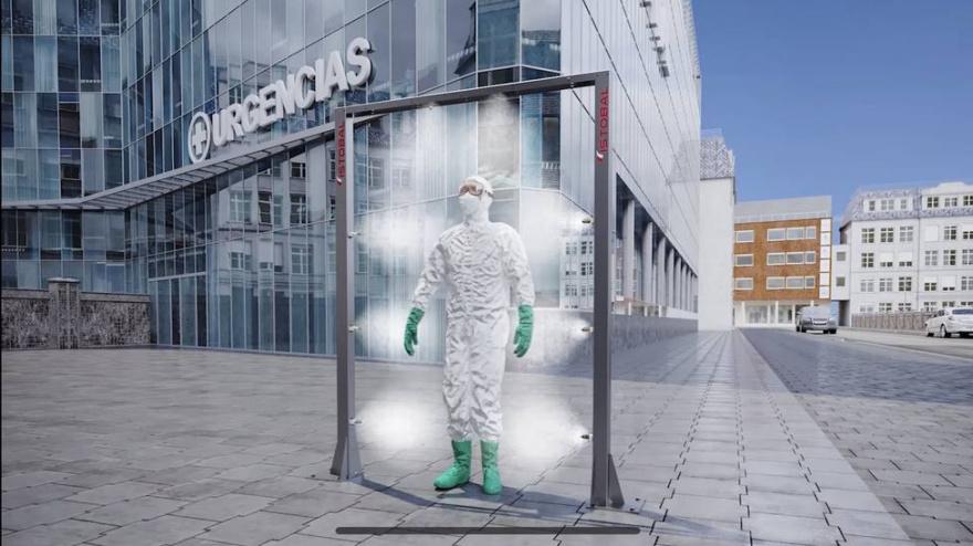 Se trata de de arcos que pueden pulverizar al paso desinfectante sobre los EPIS de sanitarios, cuerpos de seguridad y de emergencias, en 15 segundos.