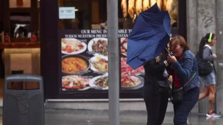 La entrada de una masa de aire relativamente frío dejará este Domingo de Ramos en el nordeste del país rachas de viento de 100 kilómetros por hora, lluvia persistente, nevadas a mil metros y olas de cuatro metros, lo que mantiene a seis comunidades en alerta, con tres de ellas en naranja por riesgo importante.