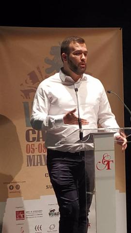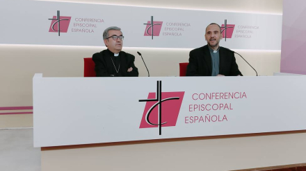 Hi intervenen Lluís Bou, president d'aquesta trobada oberta de Comunió i Alliberament a Barcelona, i Marta Ventura, presidenta de l'Hospitalitat de la Mare de Déu