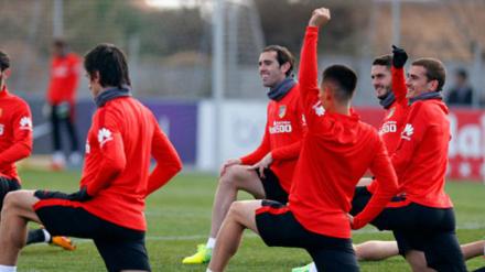 Tras el entrenamiento de este jueves, Simeone y sus jugadores mantuvieron una charla de 25 minutos sobre el césped antes de una semana decisiva para el Atlético de Madrid.