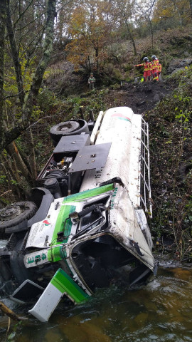 Los trabajos se alargaron hasta las 21.30 horas de ayer, después de sacar los 4.000 litros de gasoil que transportaba