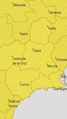 Concretamente se esperan fuertes lluvias con una precipitación acumulada en una hora de 15 l/m2, y una probabilidad de 40%-70% para el ámbito geográfico del Valle del Guadalentín.