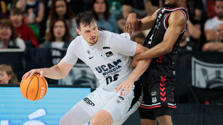 El alero de UCAM Murcia ha protagonizado la jugada más espectacular en tres de los trece partidos en los que ha participado