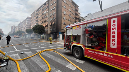 Efectivos policiales piden cerrar las ventanas de los domicilios mientras los bomberos trabajan en la extinción del fuego