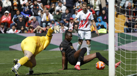 El nigeriano dio un punto al Valencia en Vallecas con un tanto increíble, después de que le cayera el rechace de un remate suyo al palo.
