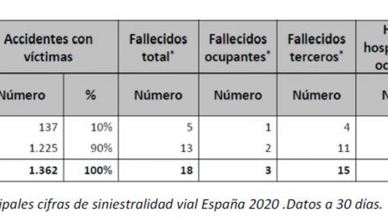 Respecto a los autobuses, en 2020 hubo 1.362 siniestros con víctimas en los que estuvo implicado un vehículo de este tipo y en los que fallecieron 18 personas, 2 de ellas ocupantes de bus y 11 ocupantes de otros vehículos implicados en el accidente. En este caso, el 90% de estos siniestros tuvieron lugar en vías urbanas.