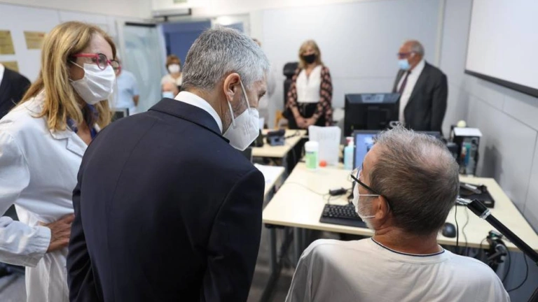 Grande–Marlaska se ha reunido con las directoras del Instituto Guttmann, Montse Bernabeu y Montse Caldés, y con el resto del equipo directivo para conocer de cerca el trabajo asistencial desarrollado por este centro que tiene su sede en Badalona (Barcelona).