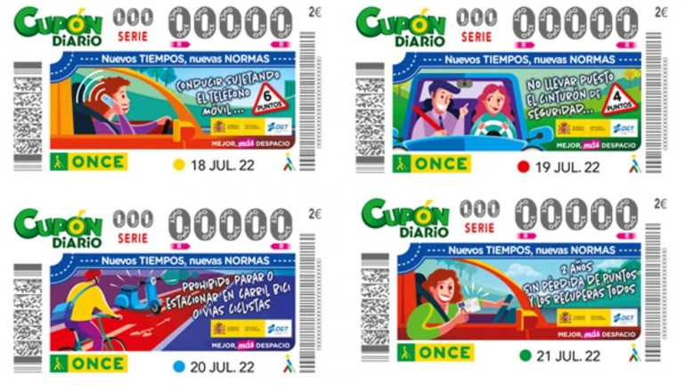La Organización Nacional de Ciegos de España (ONCE) colabora una vez más con la Dirección General de Tráfico en su tarea de concienciación en materia de seguridad vial dedicando a esta temática los cupones que pone a la venta del 18 al 21 de julio.
